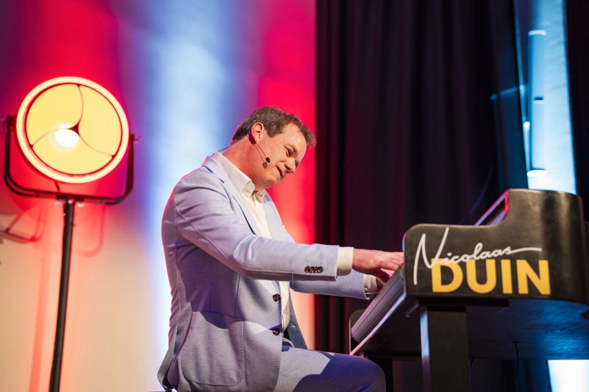 Hoe krijg je mensen in beweging? Hoe zet je met elkaar de juiste toon? En hoe benut je ieders kracht en creativiteit? Muzikaal Spreker Nicolaas Duin gebruikt muziek als metafoor. Want de lessen uit ‘De Mooiste Taal’ zijn één op één te vertalen naar samenwerking. Zowel in kleine teams als in grote complexe structuren. Van achter de piano neemt hij zijn publiek mee in een inspirerende keynote, waarbij je niet stil kan blijven zitten. Vol interactie, humor en live muziek.